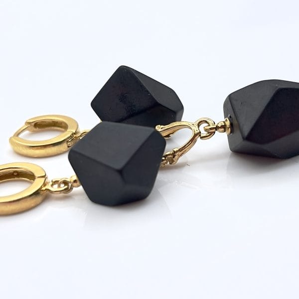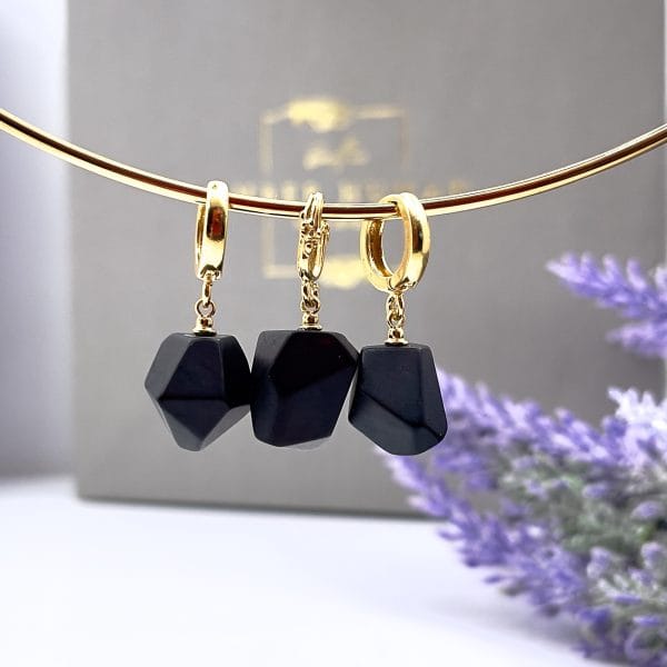 Elegant handmade set made of natural black camouflaging amber. Modern design and subtle luxury.