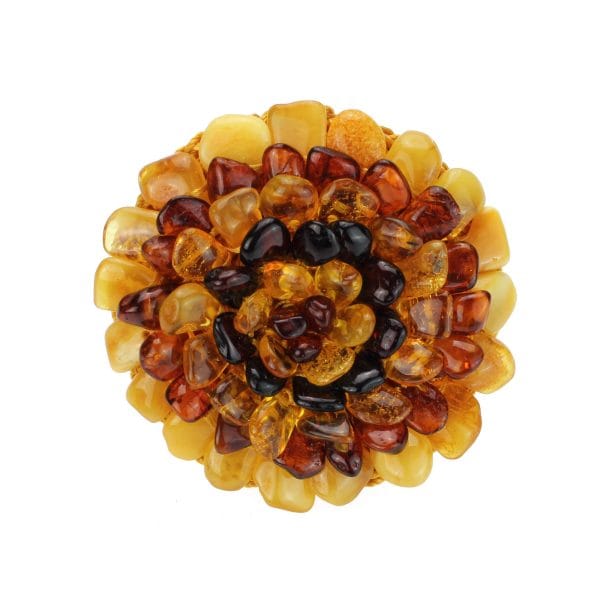 Poliruota, spalvinga Baltijos gintaro grynuolių segė – pakabukas ir juodos odos dirželis.